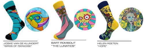 Bart Rombout werd door Let’s do goods benaderd om een Dordtse sok te ontwerpen. Bart is chronisch depressief en heeft een tijdje in een psychiatrisch ziekenhuis doorgebracht. Daar ontdekte hij bij de creatieve therapie zijn artistieke vermogens en dit was de aanzet om zich tot succesvol kunstenaar te ontwikkelen.